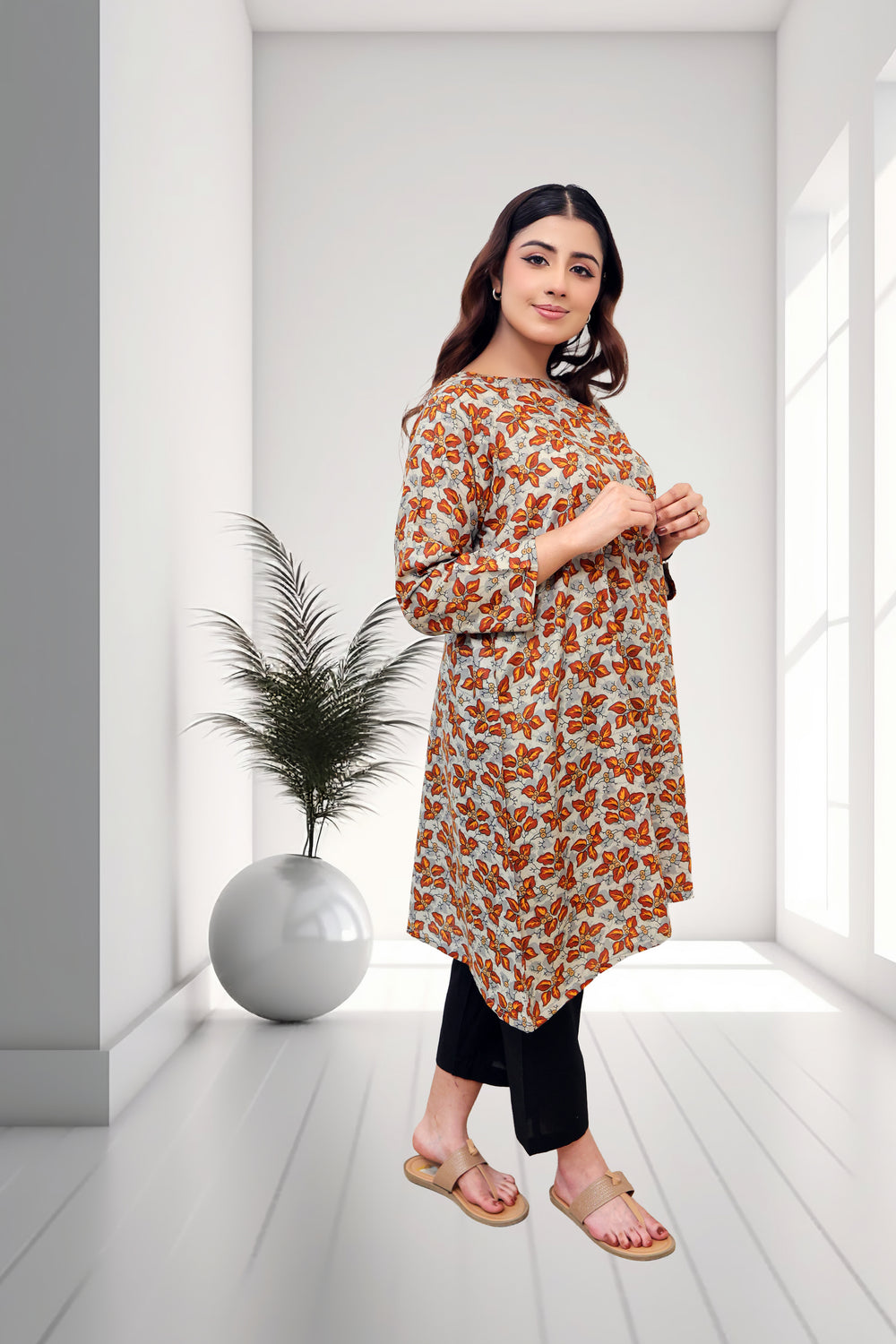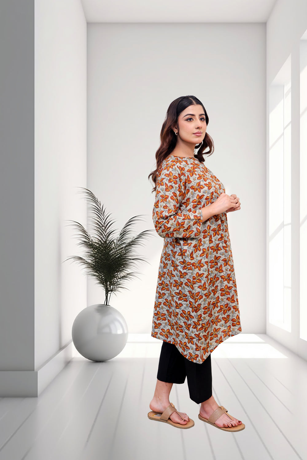 Elegant A-Line Tunic/Kurti featuring a relaxed, flowy silhouette and a chic, asymmetric high-low hemline, offering modern modesty.